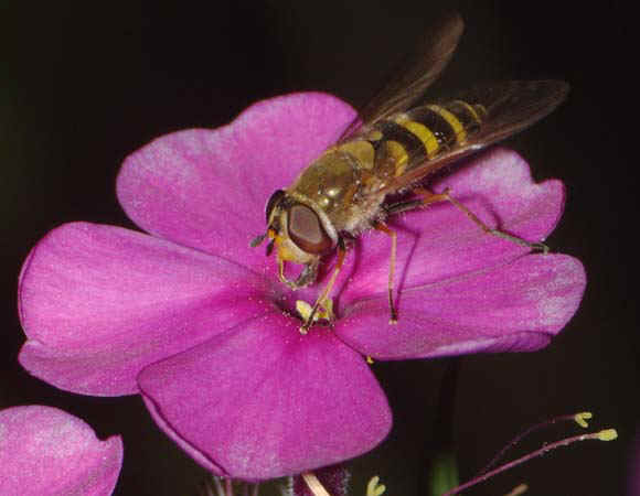 Задача фотографа при макросъемке на природе — попытаться получить снимки, рассматривая которые, можно увидеть детали, невидимые невооруженным глазом. Приведенные в этой статье снимки сделаны камерой со вспышкой, установленной на штатив, — аппарат был предварительно наведен на цветок, и далее ожидалось, пока искомое насекомое не появится в кадре. В блестящей книге К. Престон-Мэфема «Фотографирование живой природы» подобный способ съемки называется «расточительным и негибким», и предлагается снимать, в основном, с рук. Обычно задача штатива — обеспечить неподвижность фотоаппарата во время экспонирования кадра. Здесь в этом нет необходимости, поскольку длительность вспышки составляет менее 1/400 с, и задача штатива здесь — помочь фотографу сохранить постоянную дистанцию до объекта. А это не всегда бывает просто, особенно если вы согнулись в неудобном положении, стоите на коленях на камнях, или у вас затекли руки. Полагаться на автофокусировку при макросъемке не приходится, поскольку велика вероятность того, что аппарат попытается сфокусироваться на маловажной травинке на переднем плане. Да и контраст изображения может быть столь мал, что автоматика будет судорожно гонять объектив из одного крайнего положения в другое. Глубина резко отображаемого пространства при подобных съемках невелика даже при существенно закрытой диафрагме. Если же вы будете полагаться только на естественное освещение, то надежд на удачный снимок у вас останется совсем мало. Поэтому, чтобы получить максимальную глубину резкости, приходится сильно диафрагмировать объектив, и как следствие, нехватку света приходится компенсировать дополнительной подсветкой от вспышки.