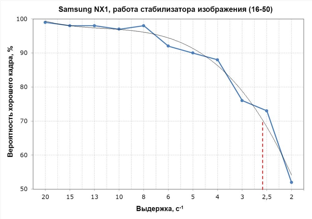 Стабилизатором в системе Samsung NX оснащаются объективы, поэтому его работа скорее характеризует объектив, нежели камеру. Тестирование проводится по нашей уже стандартной методике.