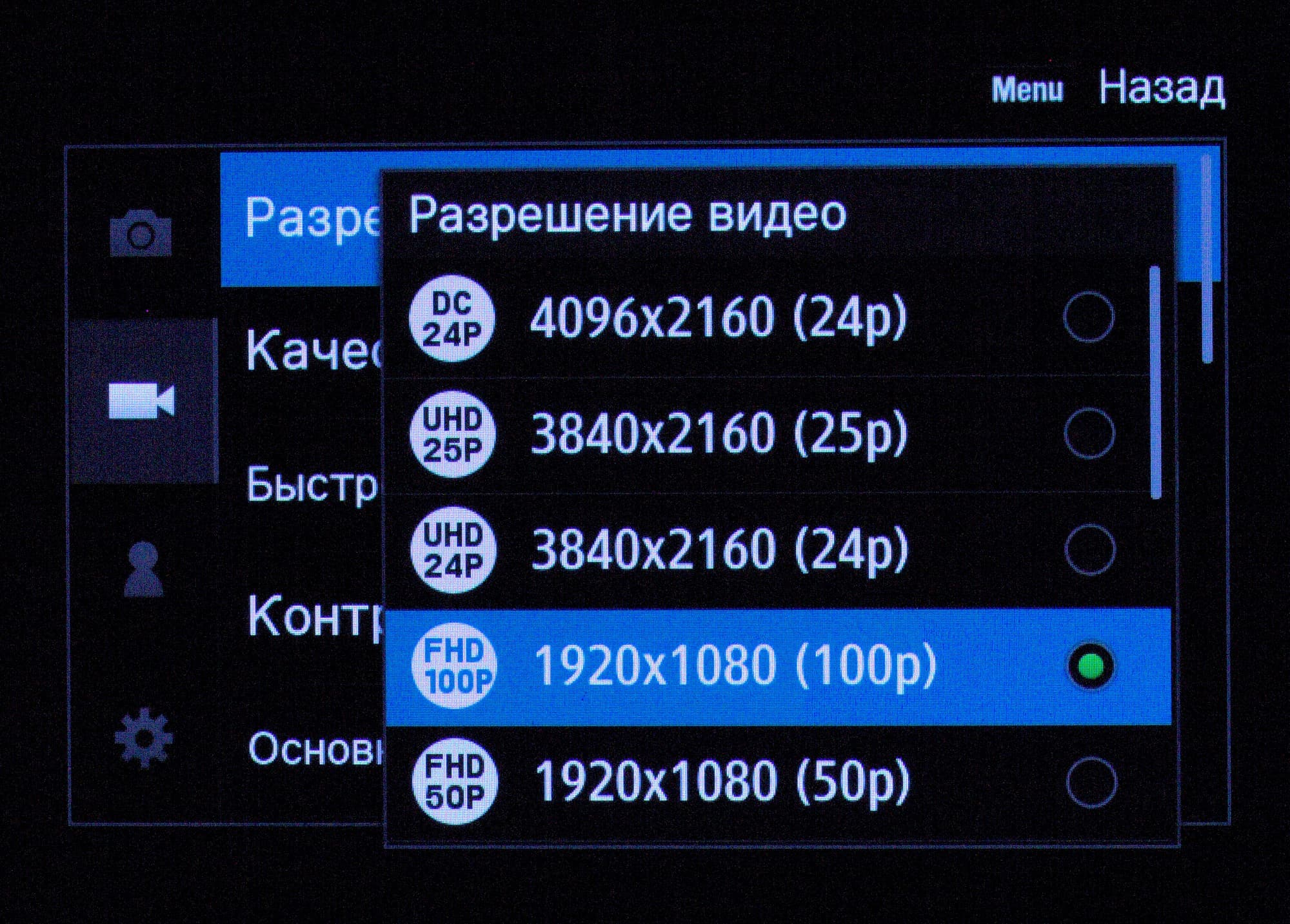 | Видео | Максимальное разрешение 4096×2160 24 fps; Full HD 1920×1080 100 fps |