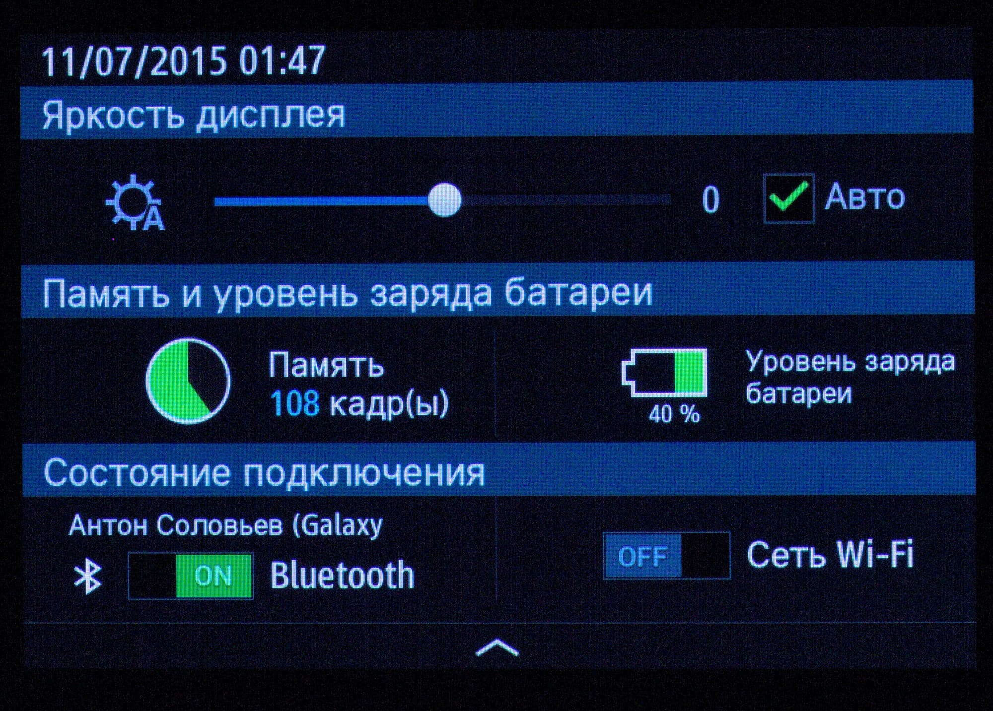 - передача на смартфон по Bluetooth.