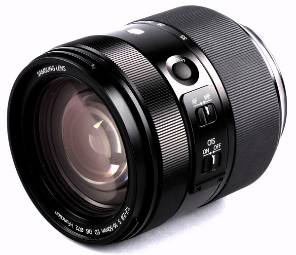 В нашем случае камера была укомплектована объективом Samsung 16-50mm f/2-2.8 S ED OIS. Помимо стандартных органов управления он имеет кнопку i-Function, которая вызывает на дисплей меню настройки экспозиции.