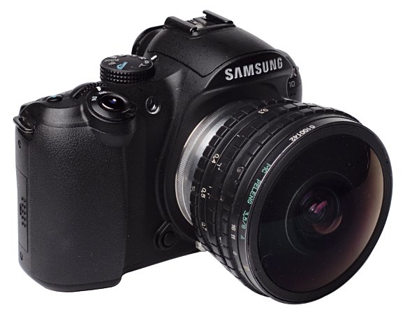 Идя уже проторенным путем, я собрал на основе объектива Пеленг объектив Круговой рыбий глаз для данного размера матрицы. В отличие от Micro 4/3, где использовалась дополнительная линза, взятая из окуляра х4, здесь можно воспользоваться более слабой линзой от окуляра х2.