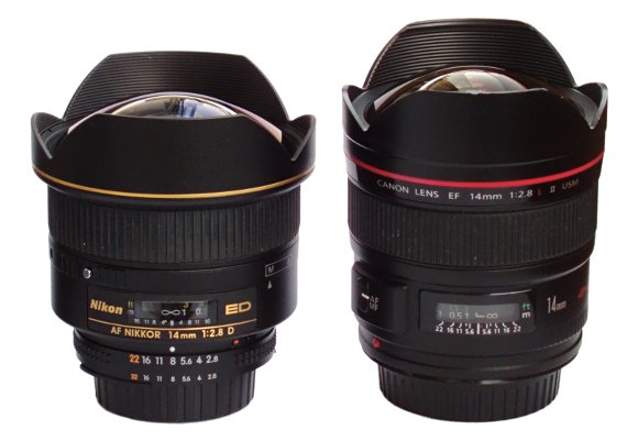 Объективы AF NIKKOR 14 мм 1:2,8 D и Canon AF 14 мм 1:2,8 L