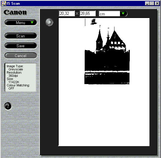 Я проводил испытания сканирующего модуля IS-22 фирмы Сanon совместно с принтером BJC 2000. В комплекте со сканирующей головкой поставляется и защитная коробка для картриджа. Подготовка принтера к работе в роли сканера занимает менее минуты. Вы достаете печатающую головку, помещаете ее в защитную коробку, а на ее место помещаете сканирующий модуль, переключаете флажок установки толщины бумаги в среднее положение, и принтер превратился в сканер. Для сканирования вы помещаете сканируемый объект, фотографию или лист текста, в специальный пакет из двух листов пластика, один из которых белый, а другой прозрачный. После этого вы вставляете пакет в принтер, как обычный лист бумаги. Для сканирования вы можете воспользоваться программой IS Scan, которая является абсолютно автономной, или вызвать TWAIN модуль из любого графического редактора. На самом деле в обоих случаях вызывается один и тот же интерфейс, только в одном случае вам предлагается сохранить полученный результат сканирования в виде файла в формате TIFF или BMP, а во втором случае — передать изображение в соответствующий графический редактор.