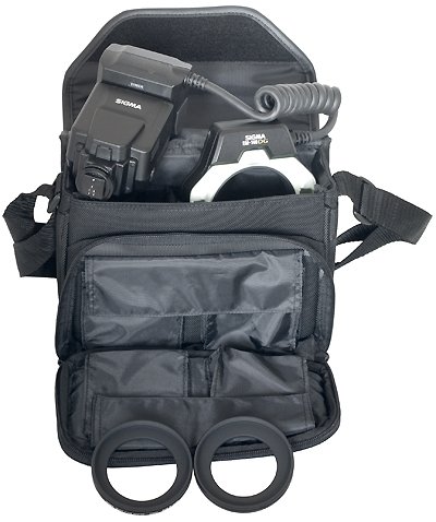 Вспышка поставляется во внушительной коробке, внутри которой находится сумка, позволяющая вместить собственно вспышку, два переходных кольца для крепления к объективам с резьбой 52 или 58 мм (это в комплекте). Кроме того, в сумке предусмотрено место для нескольких комплектов аккумуляторов и переходных колец для крепления к другим объективам. Отдельно можно приобрести кольца для объективов 62 и 77 мм. Для крепления к другим объективам придется использовать дополнительные переходные кольца уже от сторонних производителей.