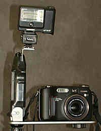 Размещение внешней вспышки на цифровой камере в отсутсвие башмака с использованием светосинхронизатора |