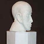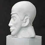 Итак у меня было: камера Casio QV4000 со встроенной автоматической вспышкой в. ч. 10, самодельный зонт отражатель/рассеиватель — парашютная ткань, вспышка Unomat B24 (в. ч. 24) с двумя авторежимами и рассеивающими фильтрами, автоматическая вспышка Minox, два штатива, крепление зонт + вспышка на штатив и серый/белый фоны «Поиск», лампа накаливания в 100 ватт над рабочим столом на потолке, белые экраны — отражатели (ватман). В качестве модели — гипсовая голова в 2/3 человеческой. На рабочем столе помещалась модель, за ней был серый фон. Камера привинчивалась к ручке вспышки, а вспышка устанавливалась на синхронизатор Soligor. Рядом на штативе — зонт с другой вспышкой.