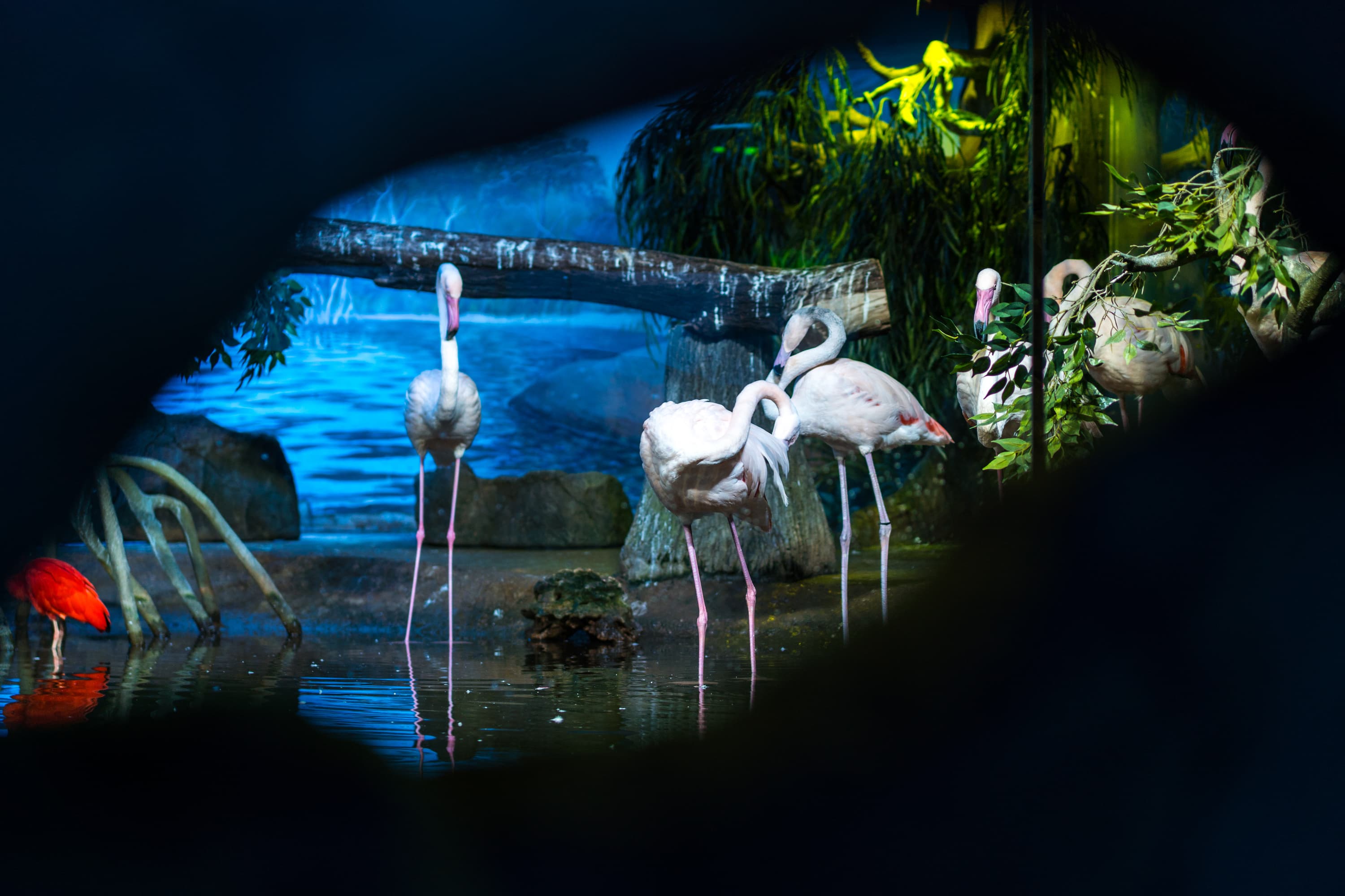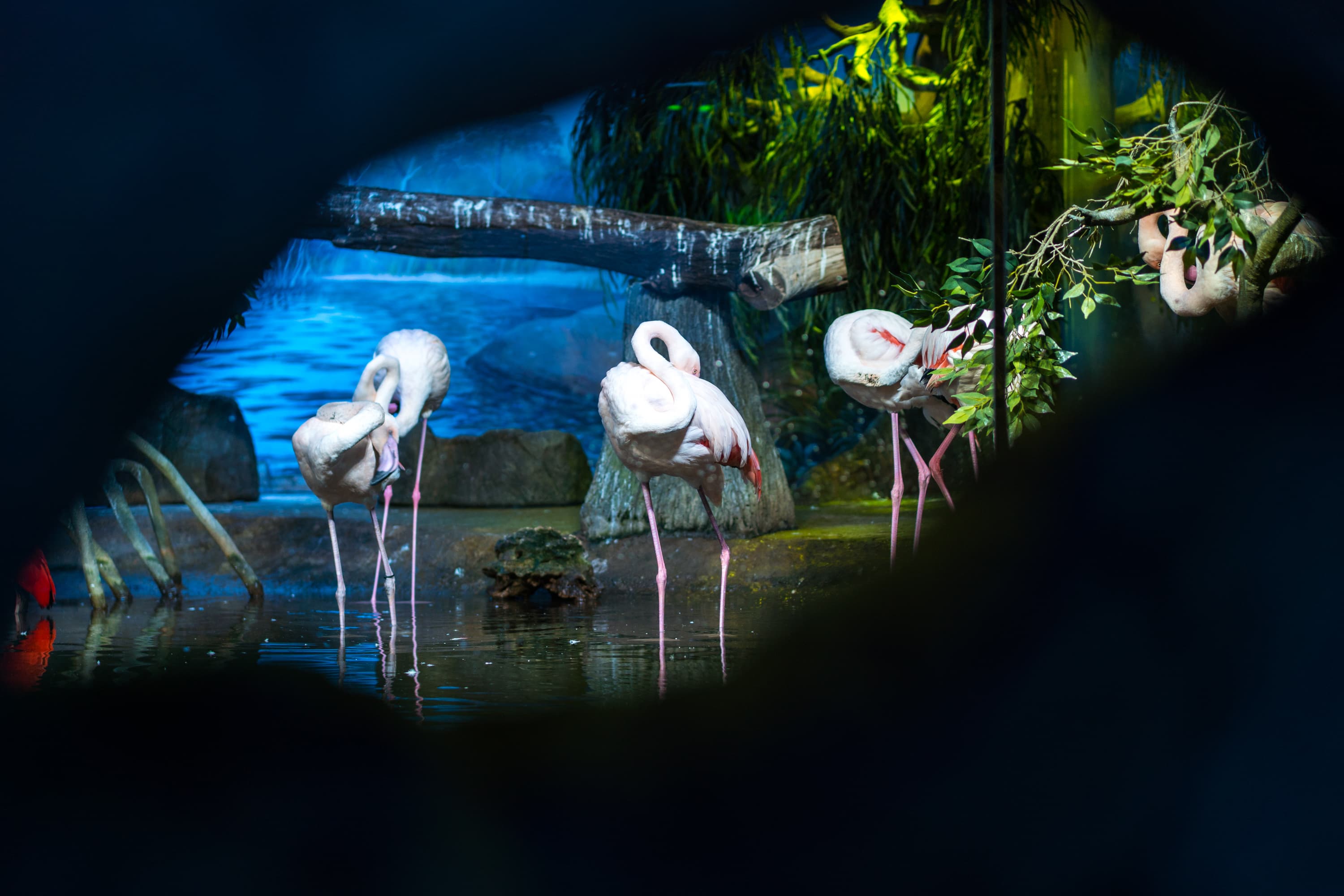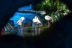 К относительному браку можно отнести лишь три кадра, да и то в них выпадение из зоны резкости вызвано либо резким движением птицы (и «смазом» изображения), либо смещением зоны фокусировки из-за того, что фламинго свернул себе шею и сунул голову под крыло.