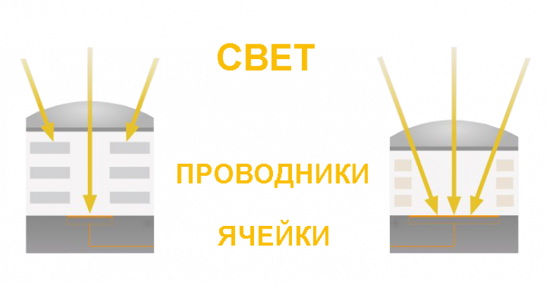 Благодаря такой структуре, проводники в меньшей степени «отсекают» свет на его пути к фотокатодному слою, и в светоприемные ячейки его попадает больше, чем у обычных матриц. Это дает возможность повысить светочувствительность Sony α6500.