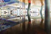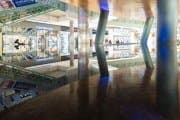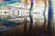 Четыре кадра, приведенные ниже, сняты при помощи объектива Sony E 10-18mm F4 OSS на максимальном раскрытии, при фокусном расстоянии 11 мм, выдержке 1/40 с и ISO 6400. Для адекватной проработки деталей в тенях (и, кстати, подъема эквивалентной светочувствительности) была введена коррекция экспозиции +2 EV. В сцене меняется колористика подсветки косых колонн, что позволяет увидеть влияние высокого ISO и на цветовоспроизведение.