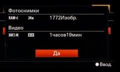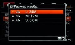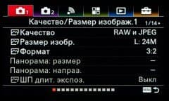| Формат записи фотоснимков | JPEG (Exif Ver.2.3), RAW (14 бит ARW 2.3 со сжатием и без сжатия); 3:2: 6000×4000 (24 Мп), 4240×2832 (12 Мп), 3008×2000 (6 Мп); 16:9: 6000×3376 (20 Мп), 4240×2400 (10 Мп), 3008×1688 (5,1 Мп); горизонтальные панорамы: 12416×1856 (23 Мп), 8192×1856 (15 Мп); вертикальные панорамы: 5536×2160 (12 Мп), 3872×2160 (8,4 Мп) |