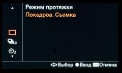 | Режимы работы затвора | покадровый, непрерывный, автоспуск, автоспуск при непрерывной съемке, брекетинг (непрерывная съемка, покадровый, баланс белого, оптимизатор динамического диапазона) |