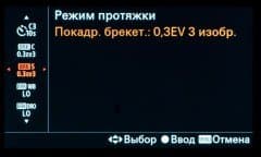 | Экспобрекетинг | непрерывный и покадровый по 3, 5, 9 кадров; при 3 и 5 кадрах — с шагом ⅓, ½, ⅔, 1, 2, 3 EV, при 9 кадрах — ⅓, ½, ⅔, 1 EV |