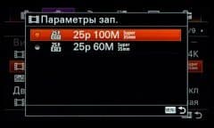 | Видео в NTSC | XAVC S 4K: 3840×2160 (30p/100 Мбит/с, 30p/60 Мбит/с, 24p/100 Мбит/с, 24p/60 Мбит/с); XAVC S HD: 1920×1080 (60p/50 Мбит/с, 30p/50 Мбит/с, 24p/50 Мбит/с), 1280×720 (120p/50 Мбит/с); AVCHD: 1920×1080 (60p/28 Мбит/с/PS, 60i/24 Мбит/с/FX, 60i/17 Мбит/с/FH, 24p/24 Мбит/с/FX, 24p/17 Мбит/с/FH); MP4: 1920×1080 (60p/28 Мбит/с, 30p/16 Мбит/с), 1280×720 (30p/6 Мбит/с) |