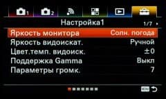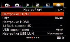 | Запись «логов» видео | уровень черного, гамма (видео, фото, кино 1—4, ITU709, ITU709 [800%], S-Log2, S-Log 3), гамма черного, кривая гаммы, режим цвета, насыщенность, фаза цвета, глубина цвета |