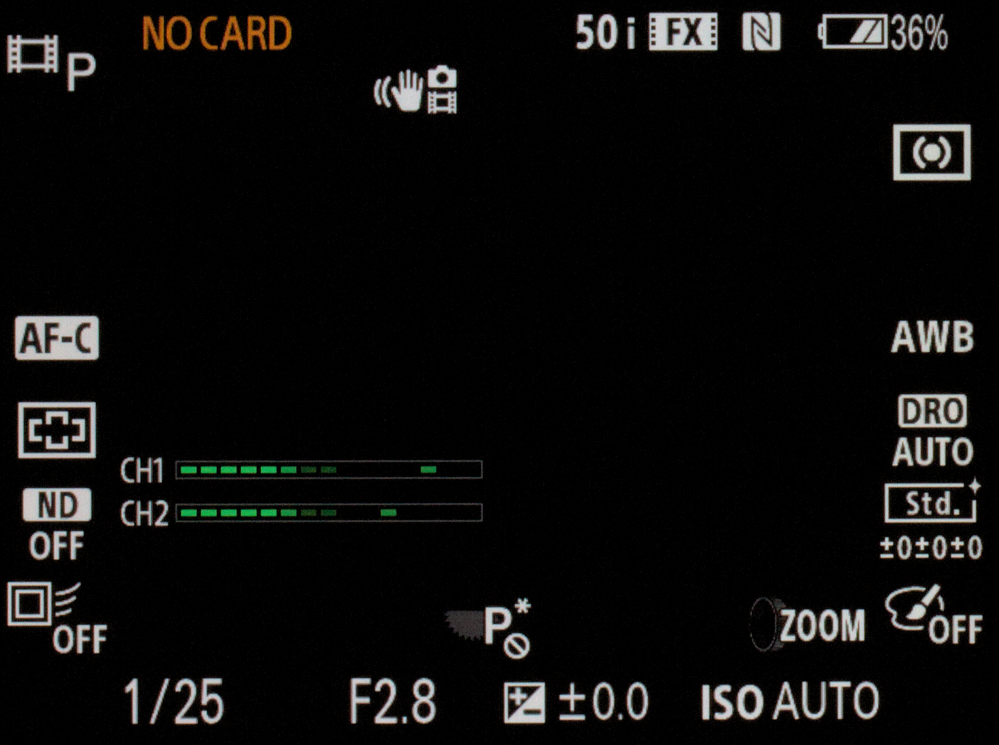 Видоискатель также отображает много информации. Помимо необходимых настроек экспозиции там отображается индикатор заряда и карты памяти, режим фото- и видеосъемки.