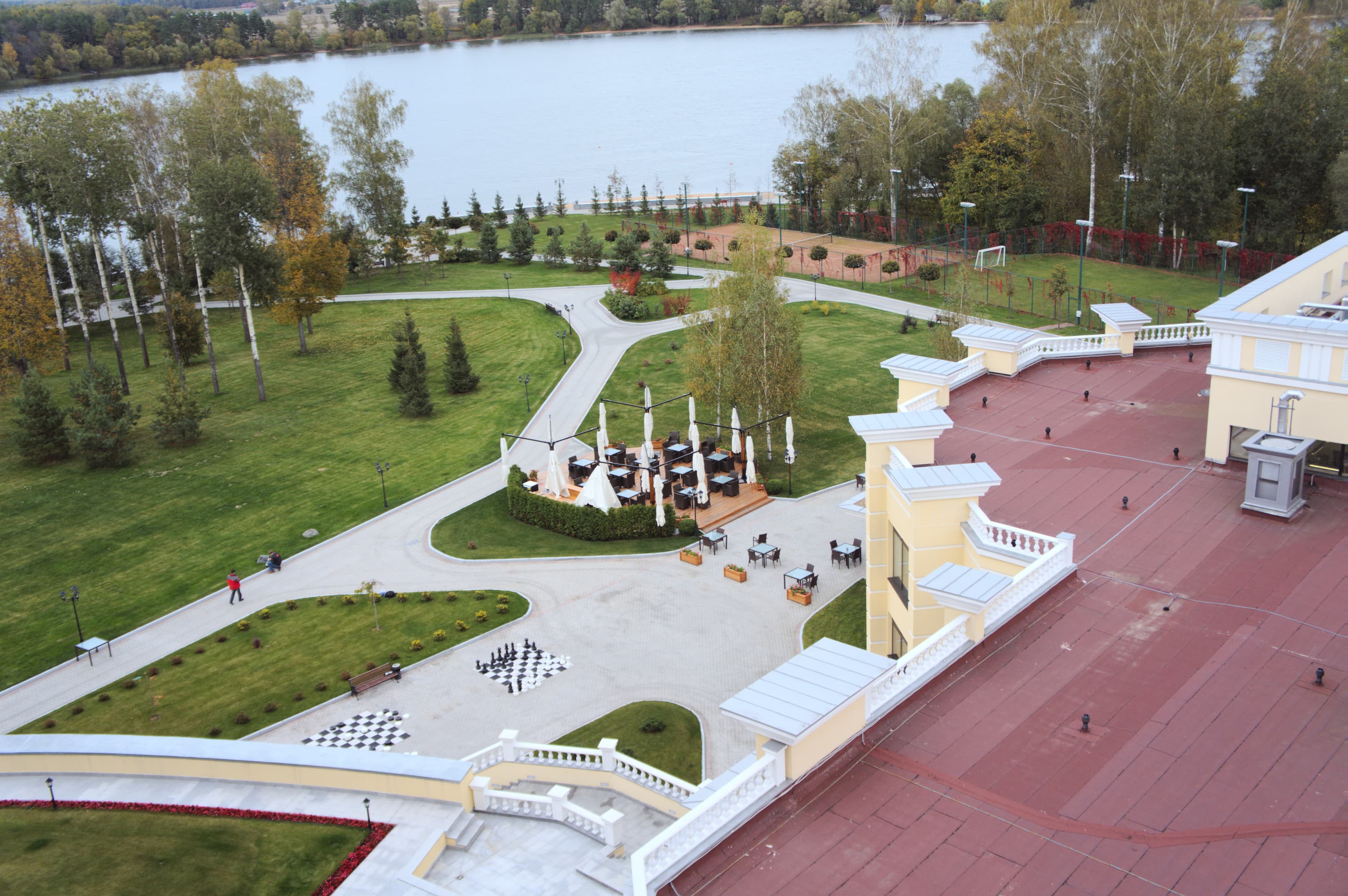 Эта панорама снята при портретном расположении камеры. Щелкнув мышью по миниатюре, можно увидеть исходное изображение размером 5536×2160 пикселей. Размер вышеприведенной сферической панорамы в эквидистантной проекции — 13042×6521 пикселей