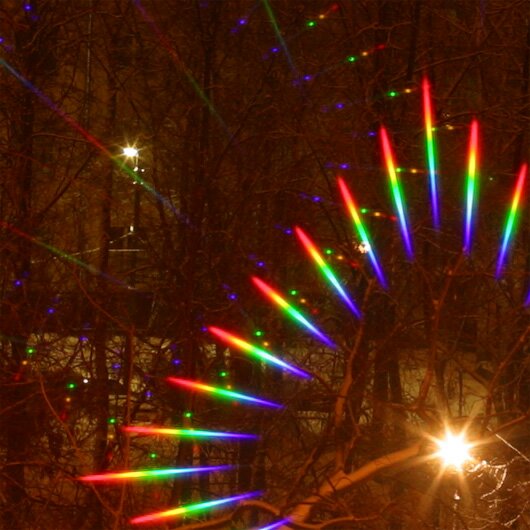 Цвет фонарей в ночи кажется зачастую одинаковым, однако это не так, спектральный состав существенно отличается, что заметно, причем одинаково хорошо, как на цветных, так и на черно-белых снимках, сделанных с дифракционным фильтром или призмой.