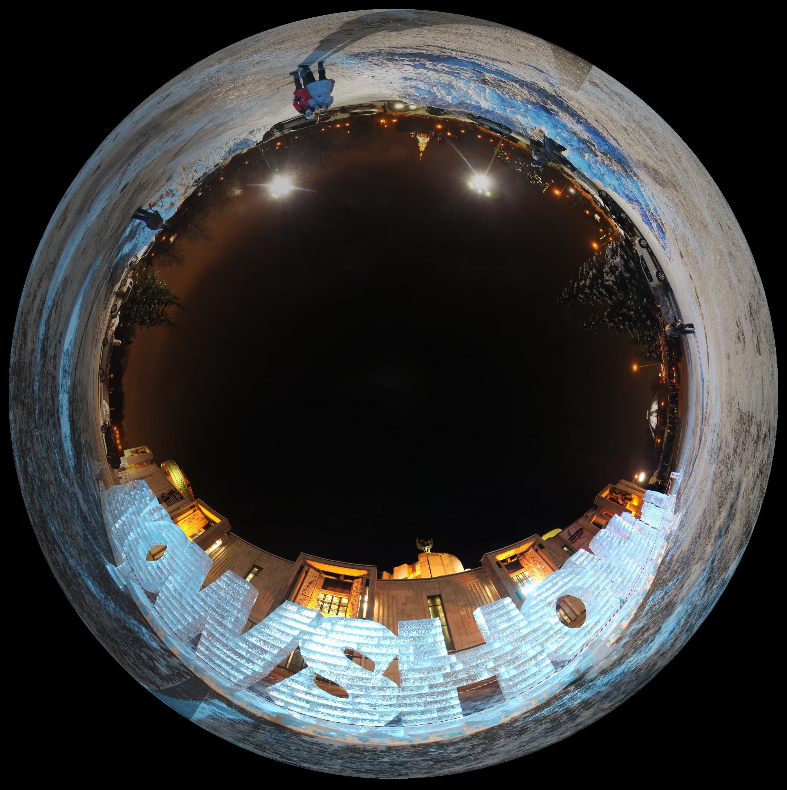Из пары снимков, сделанных этими объективами, можно легко получить фотографию, похожую на сделанную полноценным круговым объективом Рыбий глаз. Еще более эффектный кадр можно получить, если выбрать ракурс из сшитой круговой панорамы в программе Panini и преобразовать его в снимок, имитирующий рыбий глаз.