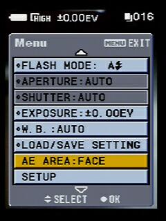 Можно использовать камеру и с внешним студийным освещением. Управление экспозицией автоматическое, приоритет выдержки, приоритет диафрагмы и полностью ручная установка экспопараметров. Относительное отверстие объектива зависит от фокусного расстояние и изменяется от 1:2,8 при минимальном фокусном расстоянии до 1:4,8 при максимальном. То, что фиксированные значения диафрагмы при фокусном расстоянии 19 мм F:4,8; F:6,3; F:8,3 несколько отличаются от стандартных, вполне естественно, при постоянном диаметре диафрагмы с изменением фокусного расстояния диафрагменные числа будут меняться. Удивляет, что квадраты диафрагменных чисел соответственно 23,04; 39,69; 68,89, то есть изменение диафрагмы на одну ступень не приводит к изменению экспозиции, как принято, в два раза. Как следствие, использовать флешметр или экспонометр не очень удобно. Впрочем, для цифровых камер это не является проблемой, поскольку всегда можно оценить снимок по ЖК экрану.