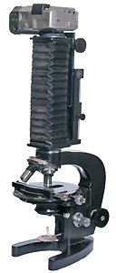К сожалению, и решетки, и призмы этой фирмы не имеют маркировки, позволяющей их использовать хотя бы в научно-познавательных целях. Неизвестен ни шаг решетки, ни дисперсия призмы. Однако их можно попытаться определить самостоятельно. С решеткой работать проще. Во-первых, она дешевле, во-вторых, легче, в-третьих, оптическую схему можно соорудить из стандартных элементов той же фирмы, закрепив все оптические элементы вдоль оптической оси. Призма же оптическую ось ломает, и с креплениями элементов под углом друг к другу возникают дополнительные трудности. Калибровка в случае решетки тоже несколько проще. Зная угол отклонения и шаг решетки, можно вычислить длину волны. Угол, если в кадр одновременно попадает и источник, и его спектр, можно вычислить, зная размер пикселя и фокусное расстояние объектива. Однако, как уже было сказано, шаг решетки нам неизвестен, поэтому попытаемся его определить с помощью микроскопа. На нижеприведенных фотографиях изображены снятая под микроскопом решетка и объект-микрометр.