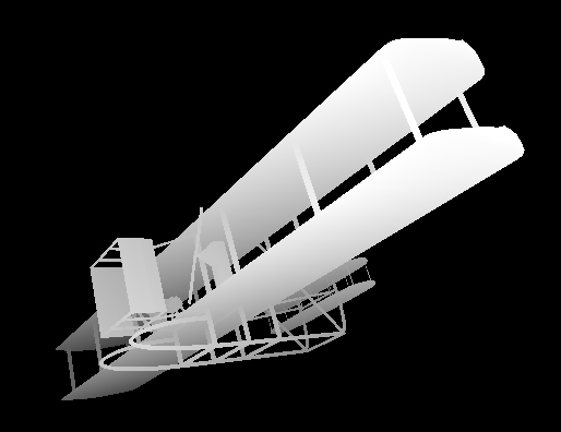Одна из первых статей на русском по этой теме здесь. Взять бесплатно программу для создания 3D картинок можно здесь. Чтобы сделать объемное «невидимое» изображение нужен узор (программа его предоставляет) и карта глубины. Ниже приведена карта глубины биплана. В старых версиях (Surface 3D 1.16) программы был модуль 3DModel-OpenGL, позволяющий конвертировать скелетные модели 3D-Max (и других подобных программ) в карту глубины. Так что можно поискать старые версии программы в интернете. А вот для новой версии Surface 3D 2 карты глубины придется делать в ручную (в программе есть редактор и набор примитивов геометрических фигур и шрифтов).