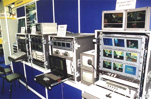 Еще более смелый шаг сделала фирма «ЭРА», которая привезла на выставку переносную телевизионную станцию, смонтированную в нескольких ударопрочных боксах. Благодаря использованию самых прогрессивных технологий удалось компактно разместить все оборудование и сделать систему исключительно мобильной.