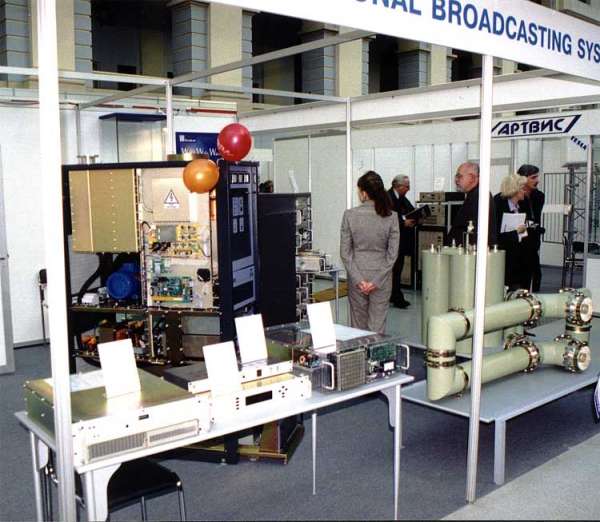Подавляющая часть экспозиции выставки была посвящена оборудованию для подготовки сигнала, однако, основной целью любого телеканала или радиостанции является вещание. И вот тут не обойтись без сложного современного высокочастотного оборудования — модуляторов, передатчиков, антенн. Поэтому вполне логично, что и эта область телевизионной индустрии также была широко представлена на TRBE 2001.