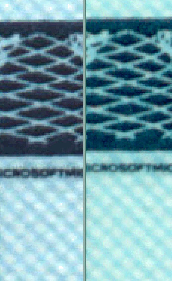 Слева — тестируемый образец, справа — НР 4200 С. Как ни странно, на распечатке разница куда меньше. Это скриншот, увеличенный в 300 раз в редакторе.