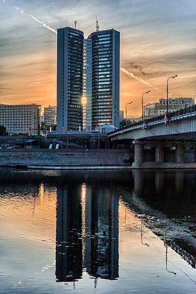 Меняя зону резкости, можно «крутить» сценой как угодно. Вот примеры съемки одного места — здания мэрии Москвы, ранее — СЭВ (Совета экономической взаимопомощи стран-участниц Варшавского договора), — сделанные с интервалом в 20 минут (я просто спустился с моста на набережную). Объектив на максимальном раскрытии, ISO 100, съемка с рук.