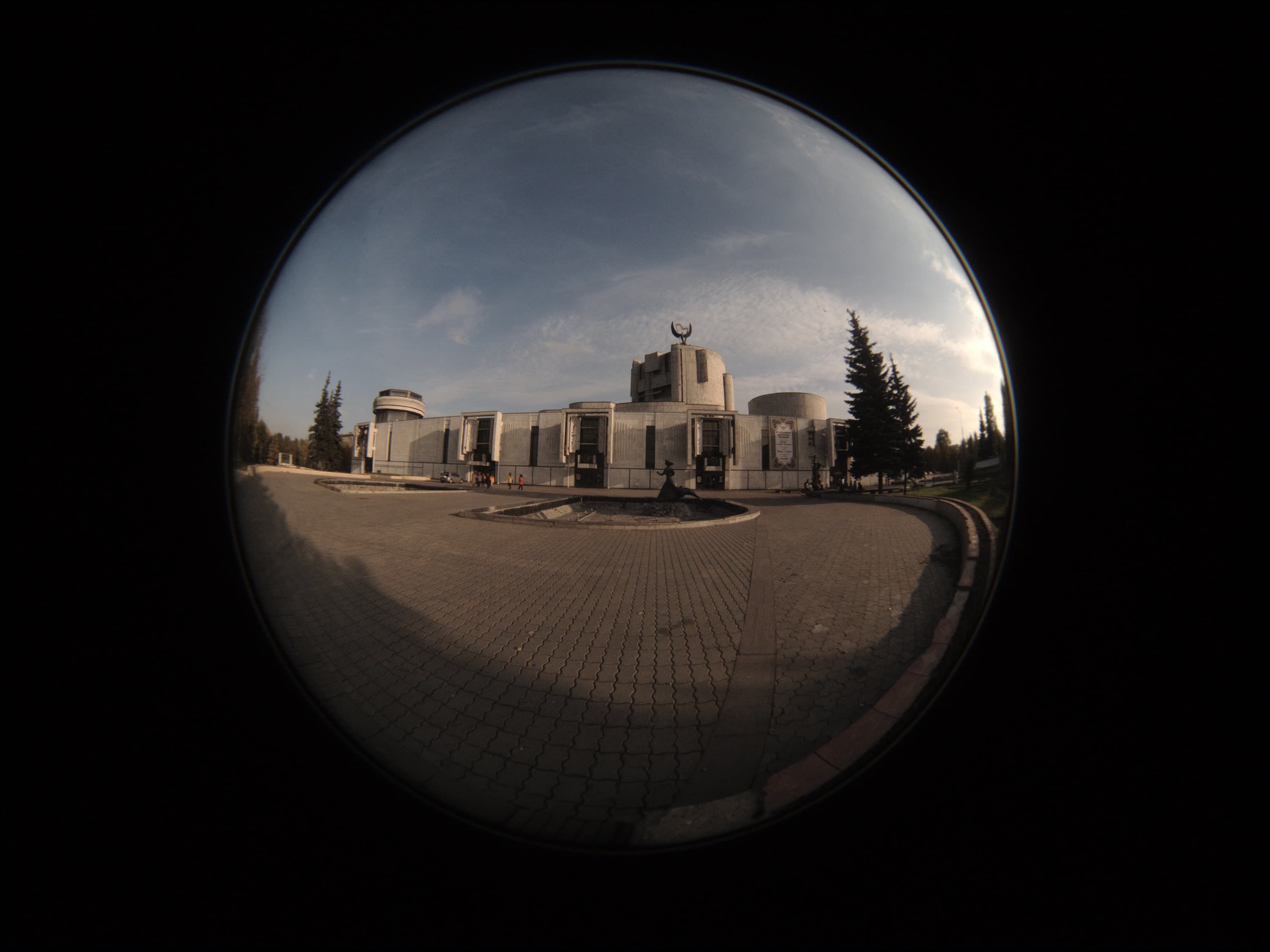 Итак, задача получить насадку типа круговой Рыбий глаз успешно решается с помощью объектива Зенитар. Учитывая его более низкую стоимость, эта конструкция может быть интереснее, чем конструкция с Пеленгом. В случае, когда нам нужен именно круговой Рыбий глаз, Зенитар дает существенно меньше бликов, и характерная для Пеленга периферийная кольцевая засветка практически незаметна. К сожалению, универсальной конструкции не получается, если мы хотим получить просто широкоугольную насадку, изменяя фокусное расстояние объектива аппарата, то результат получается хуже, чем с Пеленгом. Широкоугольную насадку из Зенитара тоже можно получить, но для этого надо менять линзу, расположенную за объективом, и изменять расстояние между элементами насадки, что сильно снижает оперативность конструкции. Большим удобством использования насадки является то, что точная юстировка осуществляется автоматически за счет автофокуса аппарата. В случае, если мы хотим использовать составной объектив с зеркальной камерой, всю фокусировку придется делать вручную и получить оптимальный результат довольно сложно. Если к этому добавить еще существенное увеличение аберраций, то подобное решение можно рекомендовать только как аварийное для метеостанций, когда другая возможность получить снимок небесной полусферы отсутствует.