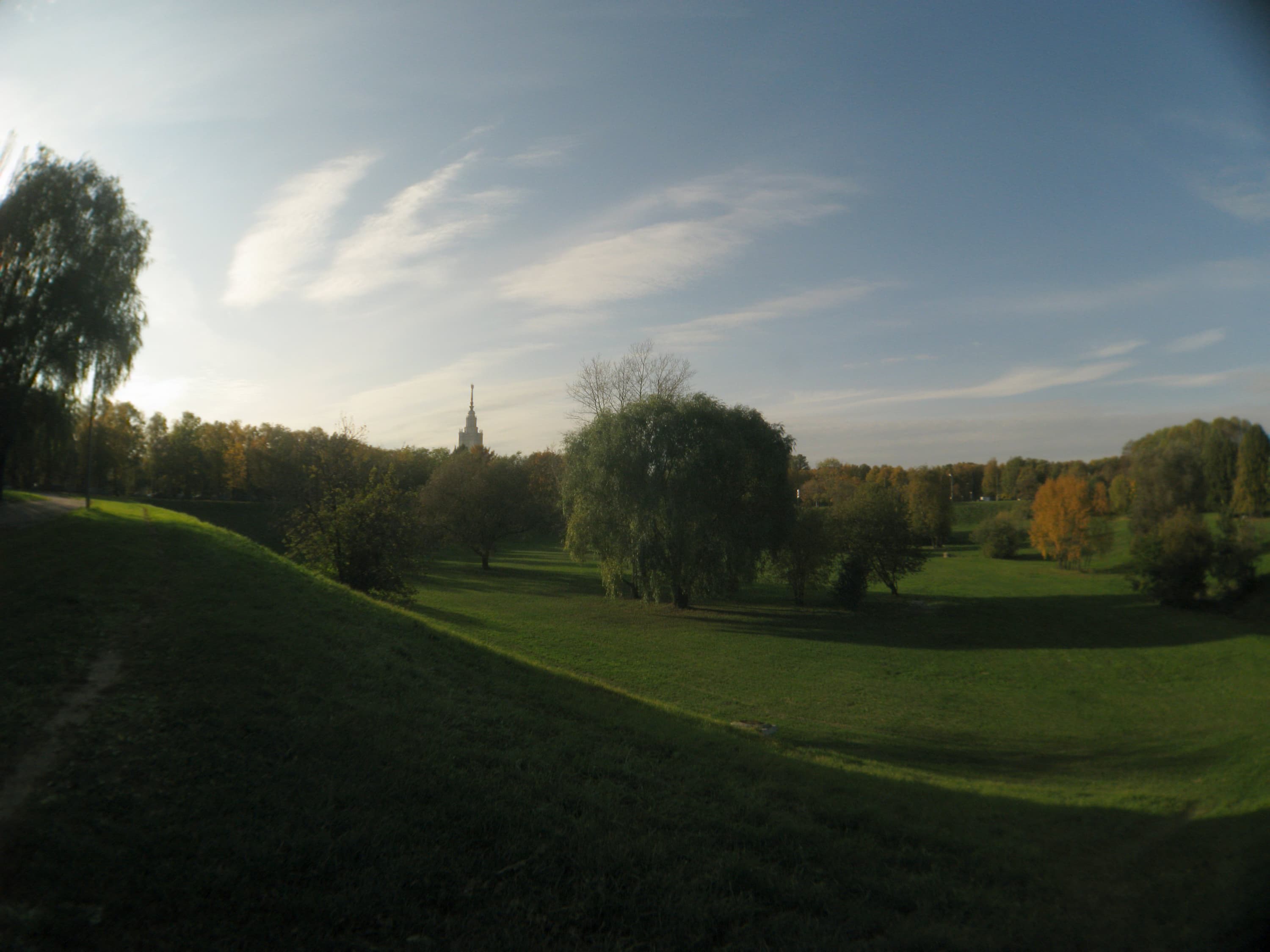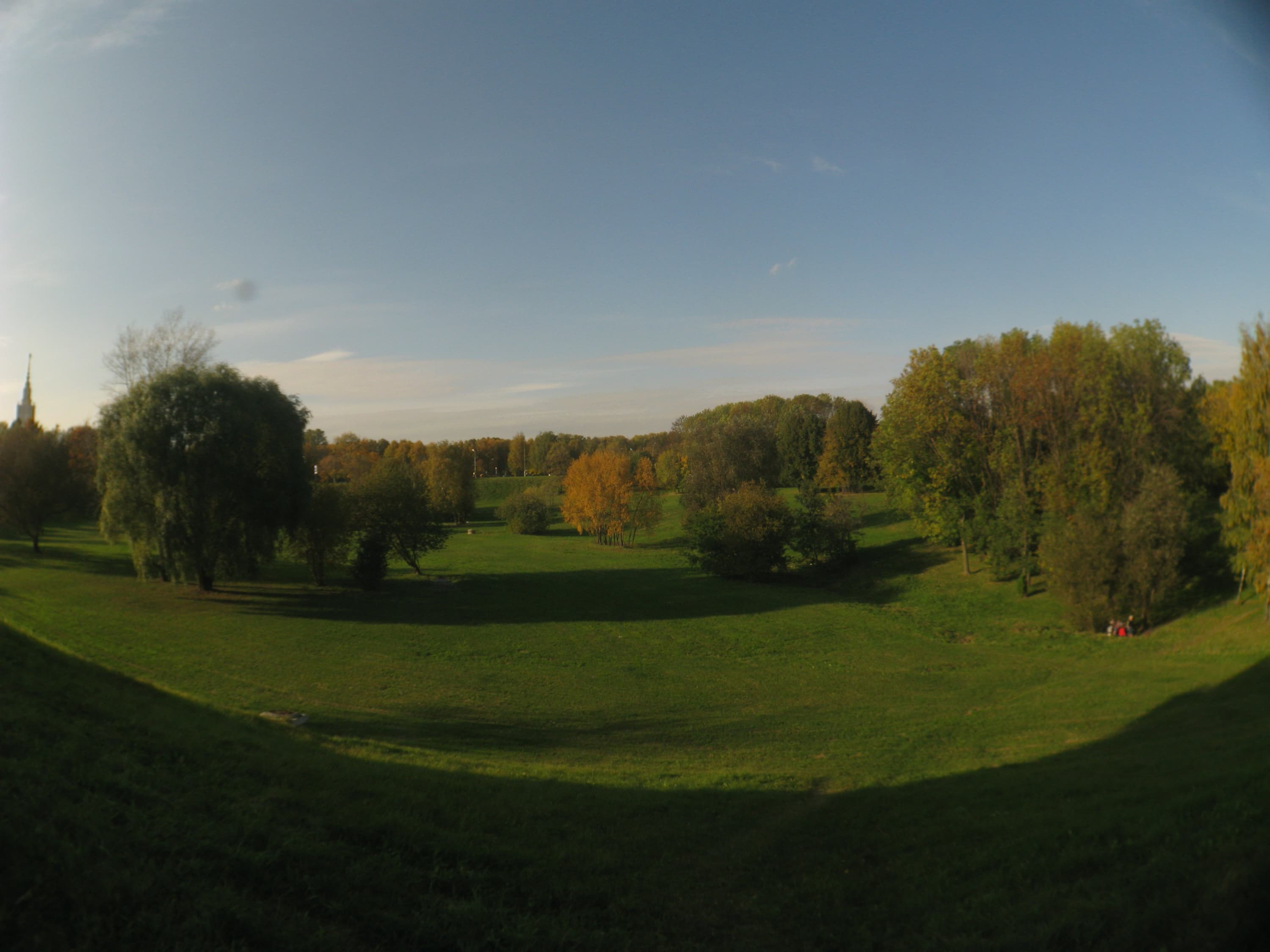Миниатюры. Щелкнув по ним мышью, можно увидеть исходное изображение, преобразованное из Raw в JPEG. Даже на миниатюрах можно заметить, что хотя угол охвата совпадает, но геометрия искажений у этих насадок разная. Сжатие на краях в случае использования объектива Зенитар существенно больше, при практически равном масштабе по центру кадра. На снимке, сделанном с помощью объектива Пеленг, заметен кольцевой блик на мостовой в зоне противоположной наиболее яркой части неба. Приведенные снимки получены при фокусном расстоянии объектива аппарата — 13 мм при использовании Зенитара и 22 мм при работе с Пеленгом | |