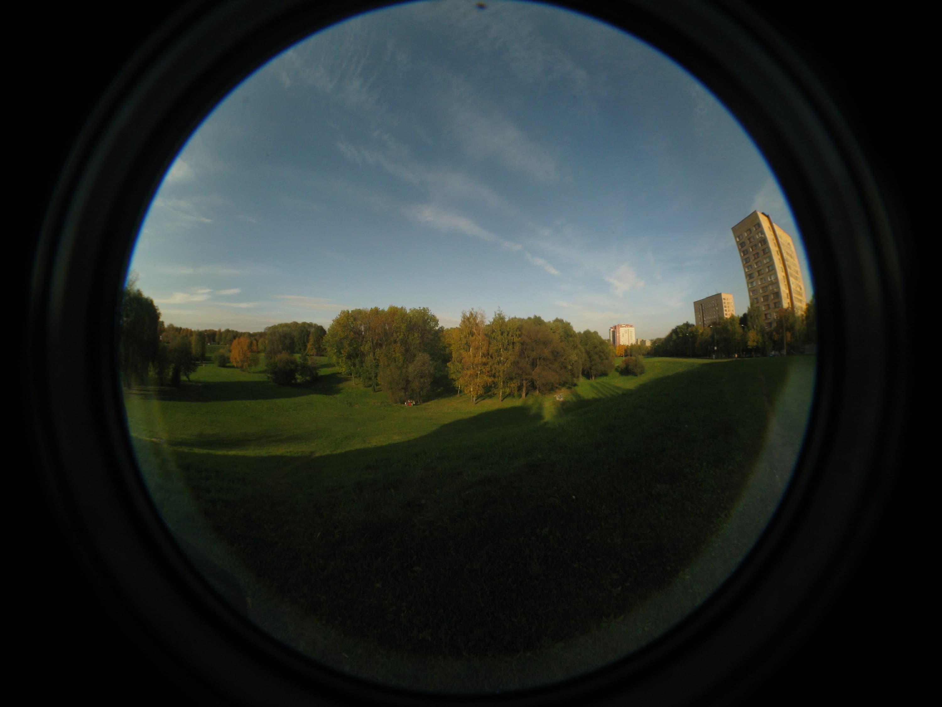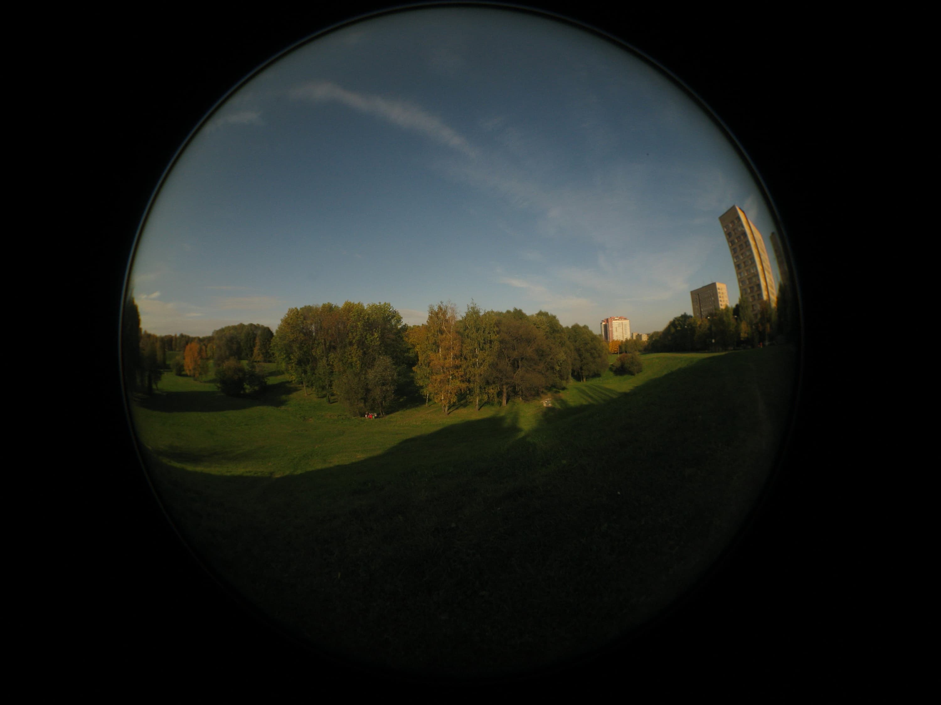 Продолжая эксперименты, можно попытаться, используя схему составного объектива, получить из объектива Зенитар объектив круговой Рыбий глаз для зеркальных камер. В качестве второго объектива можно использовать объектив Индустар 61 ЛЗ, объектив Гелиос 44, или тот же Юпитер 3, что мы использовали в насадке. Хотя рабочий отрезок Юпитера 28,8, а не 45 мм, но в случае составного объектива он используется как макро объектив, и, следовательно, его расстояние до матрицы будет больше 45 мм. Получившийся результат, впрочем, оказался весьма посредственным и годится только для основного исторического применения — съемки облачности.