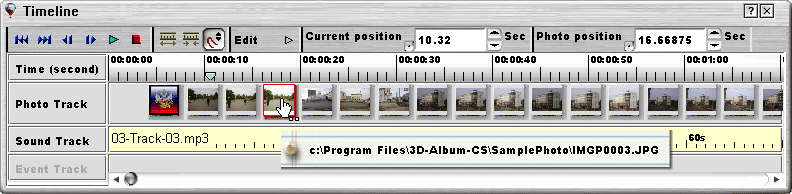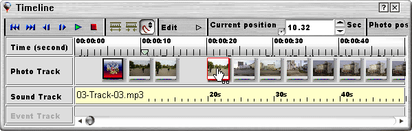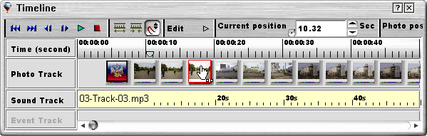 После того, как вы расставили все снимки по местам, не спешите закрывать таймлинию. Пусть вам не покажутся странными те действия, которые еще предстоит проделать. Прокрутите таймлинию до самого ее окончания, до пустого белого кадра, и запомните или запишите время, отмеченное в окне Current Position. Для чего это нужно — скоро увидим.