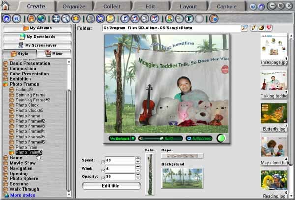 Вкладка Create. Основной инструмент, позволяющий создать "живой" фотоальбом, заставку или презентацию.