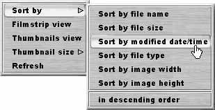 Порядок этот легко поменять, вручную перетащив пиктограммы фотографий. Но можно поступить и проще: нажмите в пустом месте копилки правой кнопкой мыши, и из контекстного меню выберите нужный вам порядок сортировки: по имени файла, по его размеру (в КБ), по дате создания/изменения, по типу файла, и, наконец, по ширине либо высоте рисунка.