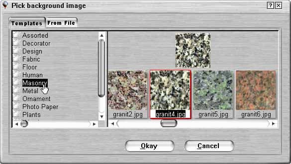 Выбрав из списка нужную текстуру, нужно выделить ее и нажать Okay. Помимо готовых библиотек текстур разрешается использовать и любые другие — перейдите на вкладку From File, и найдите подходящую, либо самостоятельно созданную.