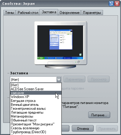 К сожалению, поделиться с друзьями или коллегами свежеиспеченным оригинальным скринсейвером не получится: для работы такого скринсейвера необходимо наличие в системе проигрывателя Visviva, устанавливающегося вместе с 3D-Album. Этот проигрыватель может обрабатывать файлы с расширениями *.vexe и *.vobj, создаваемые программой, и только при его наличии список заставок Windows пополнится еще одним пунктом: vaesaver.