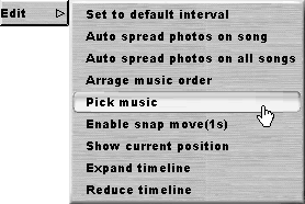 Используя эти команды, пользователь может выбрать звук для его проигрывания в фоне, а также автоматически подогнать общую длительность показа фотографий под длительность фоновой музыки. Огорчает, пожалуй, отсутствие графического отображения уровня звука на аудиодорожке — фотографии было бы удобно расставлять, ориентируясь на его пиковые значения.