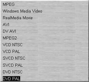 И здесь ничего сложного... Самый верхний пункт (1) отвечает за тип видео, который вы хотите получить. Программа умеет создавать видео всех известных форматов, список которых проще представить скриншотом: