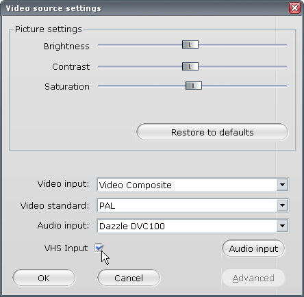 Если вы производите захват с потрепанной VHS-кассеты, то неплохо бы отметить флажком пункт VHS Input (в этом случае включается режим, старающийся не допустить рассинхронизации видео со звуком).