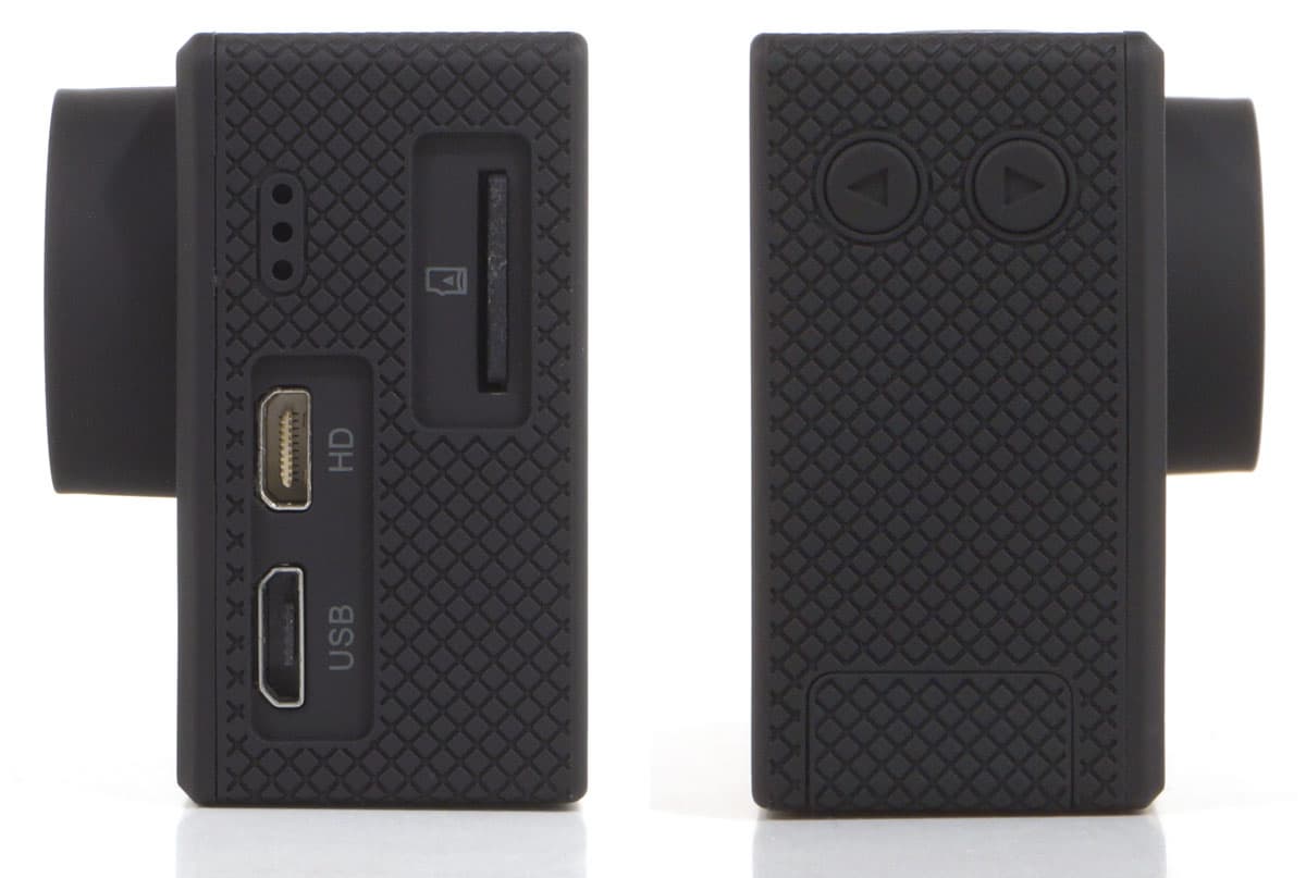 «Кирпичный» дизайн — давно устоявшаяся форма большинства экшн-камер, покупатель спорить с таким выбором давно перестал и понимает, что такая форма корпуса делает камеру более универсальной. Нежели, к примеру, форма в виде фонарика. Ну где в фонарике разместишь дисплей?