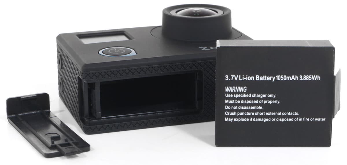 Прилагаемый аккумулятор емкостью 1050 мА·ч позволяет вести беспрерывную видеозапись в течение 53 минут в максимальном режиме 2880×2160 24p с выключенным Wi-Fi.