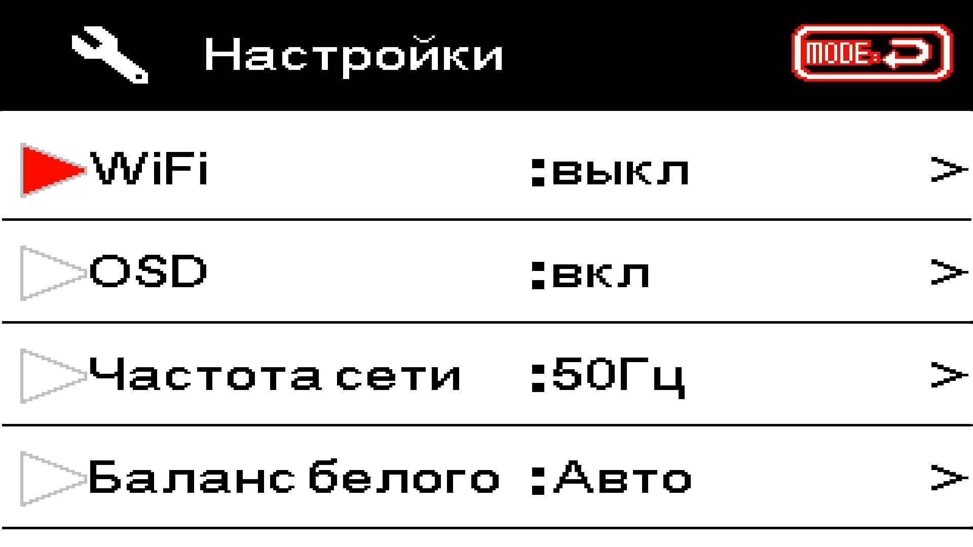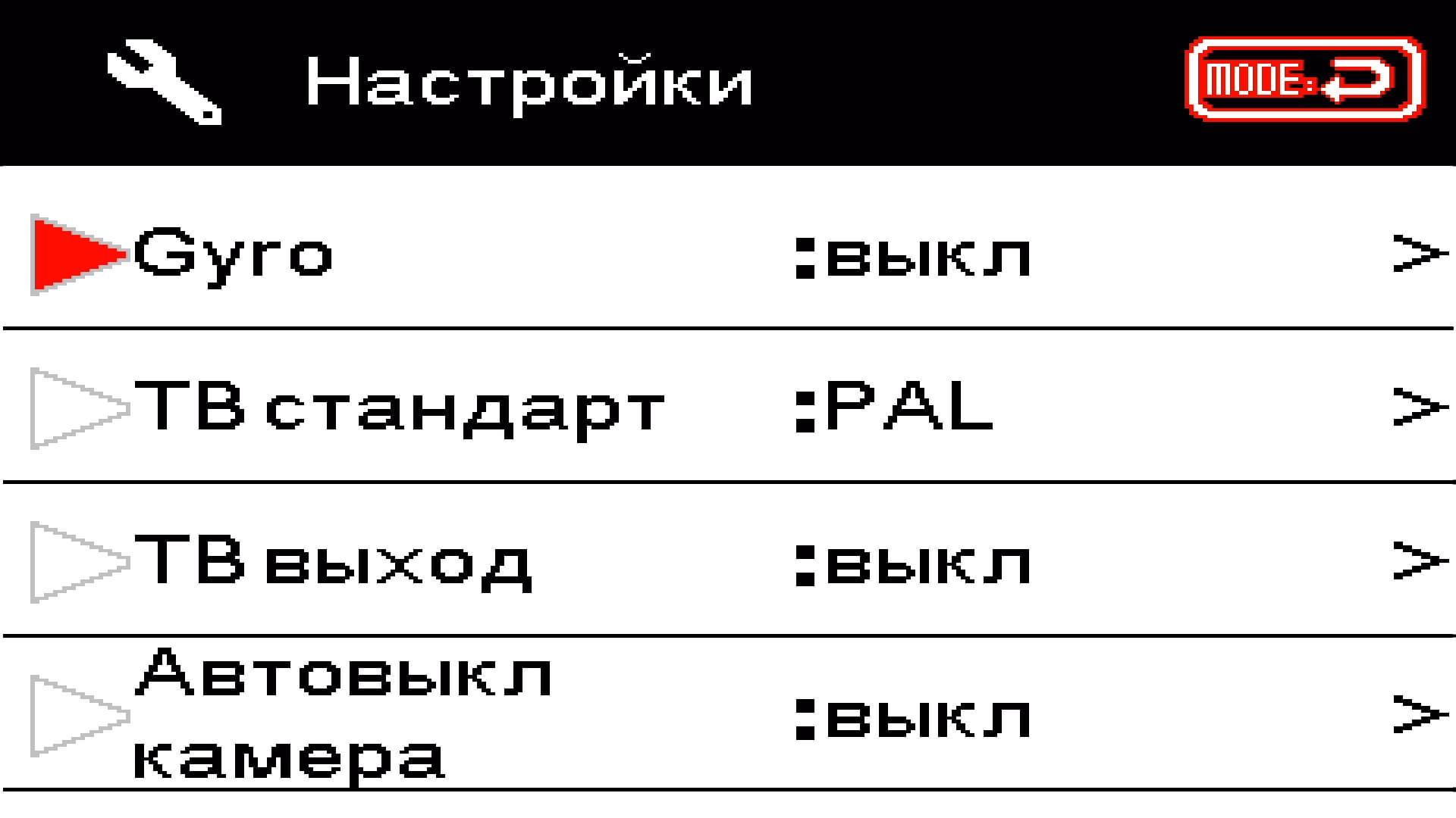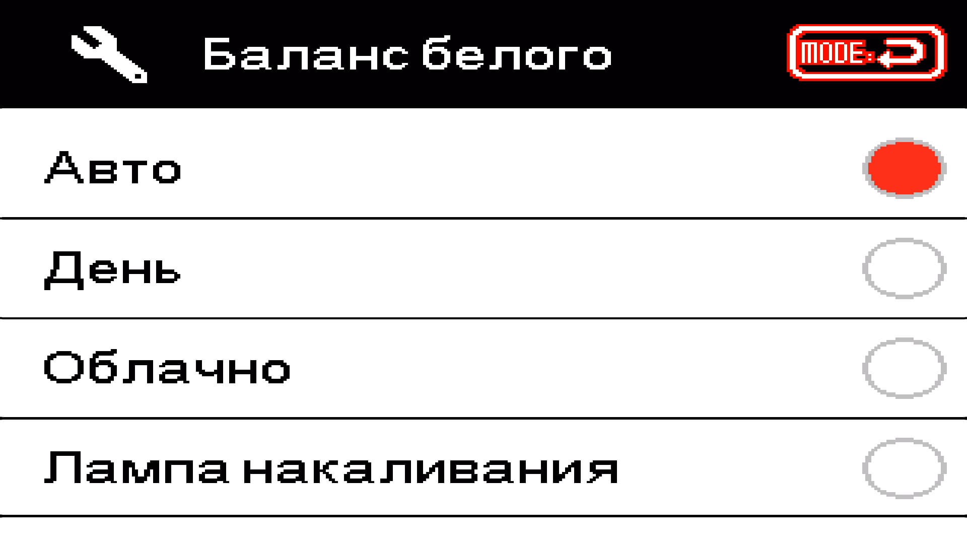 Второе меню открывается боковой кнопкой Вперед и содержит параметры, относящиеся к конкретному выбранному текущему режиму работы: Видеосъемка, Фотосъемка и т. д.