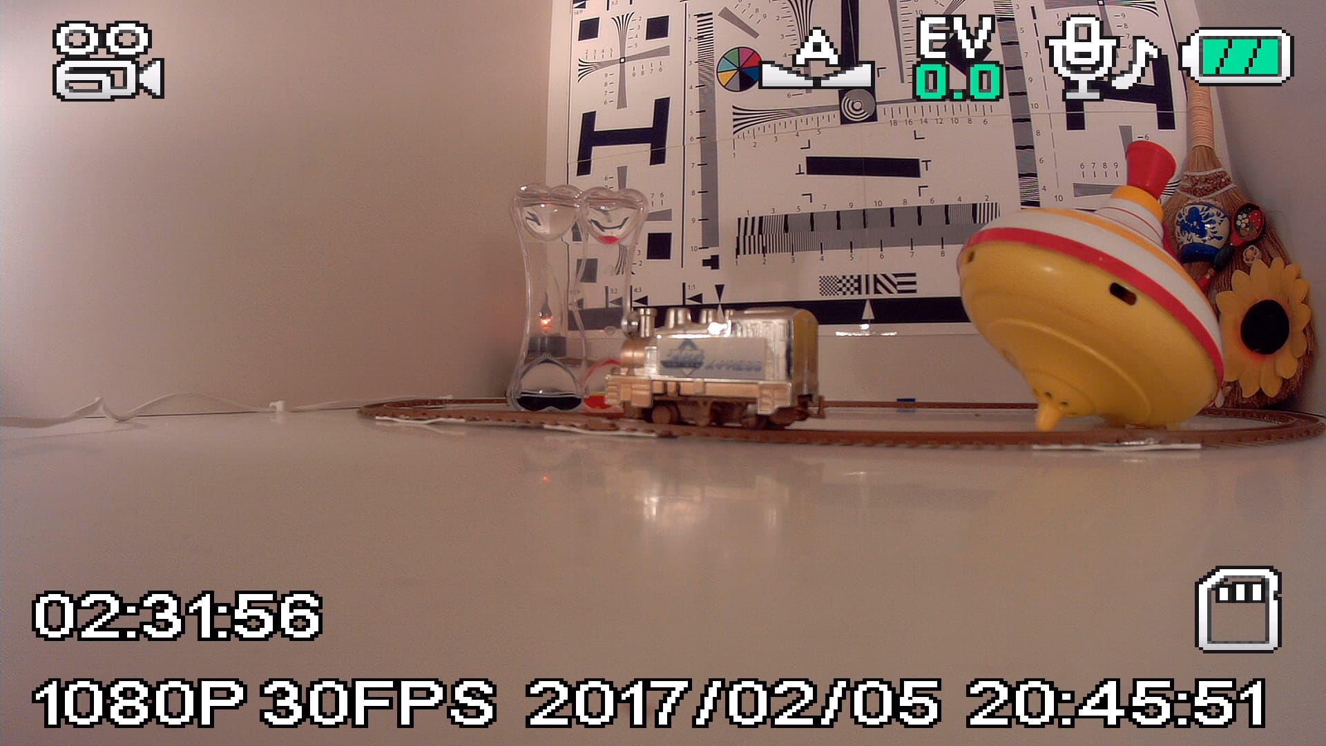 Из «ночной» видеозаписи, представленной выше, нетрудно представить возможности камеры при съемке в условиях недостаточной освещенности. Да, все миниатюрные камеры предназначены лишь для съемки с максимально возможным количеством света. Стоит уровню освещенности понизиться — в кадре тут же появляется значительный шум, разрешающая способность падает. Рассматриваемый аппарат имеет настройку, которая по идее должна увеличивать чувствительность камеры. Но при таких размерах оптики сделать это можно, только задрав усиление. А вместе с ним приходит тот самый упомянутый шум.
