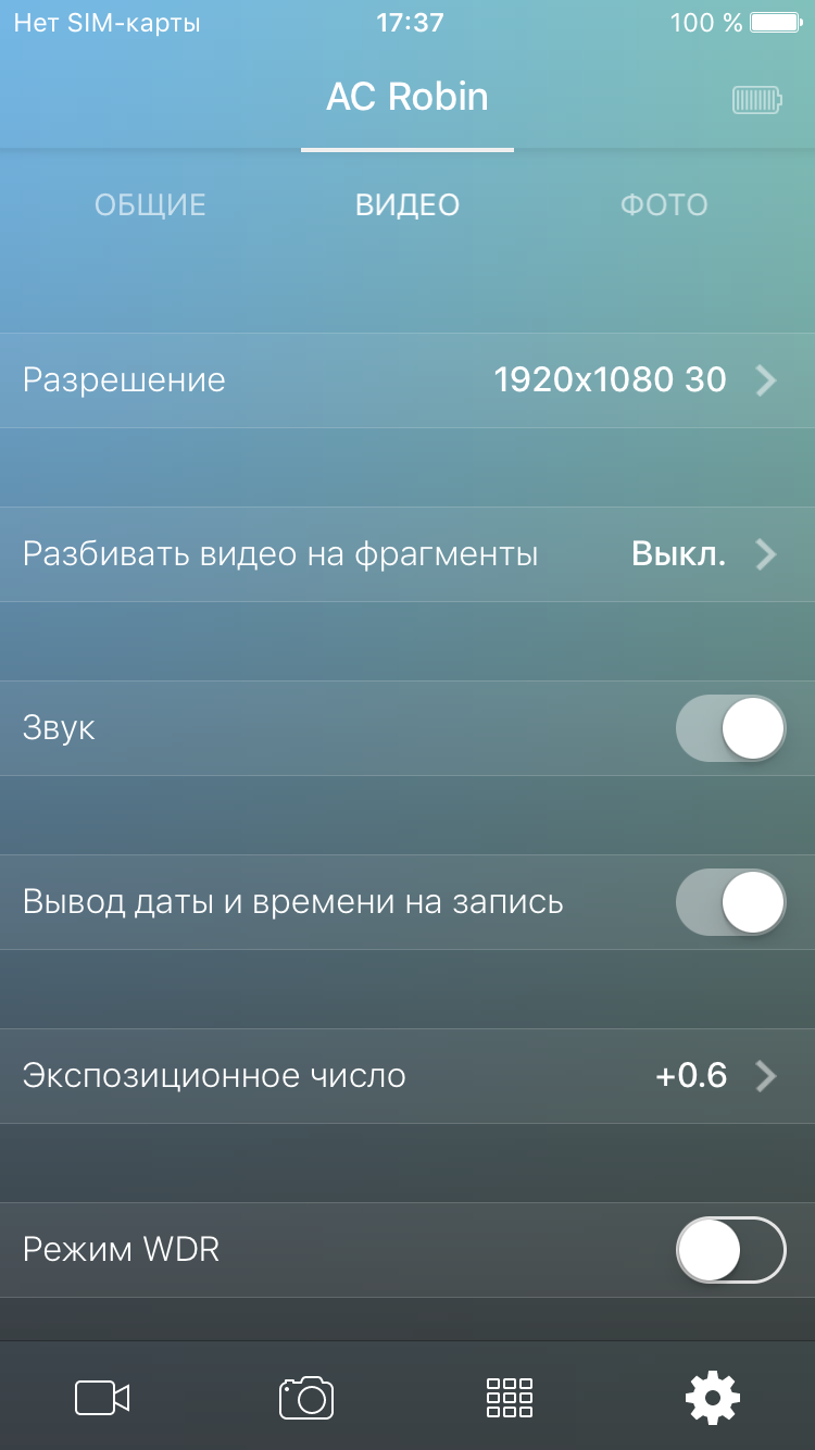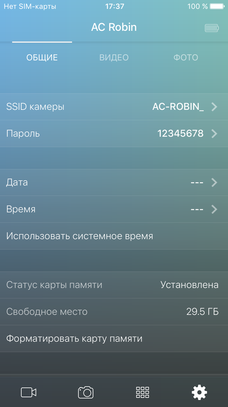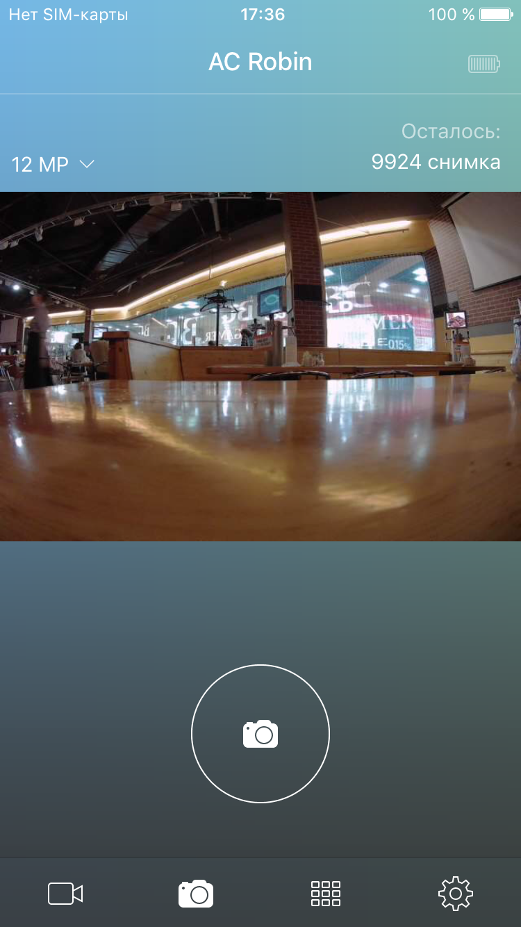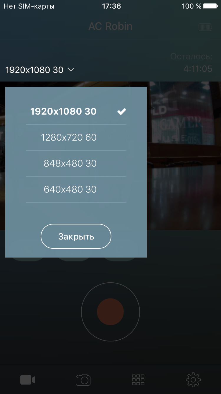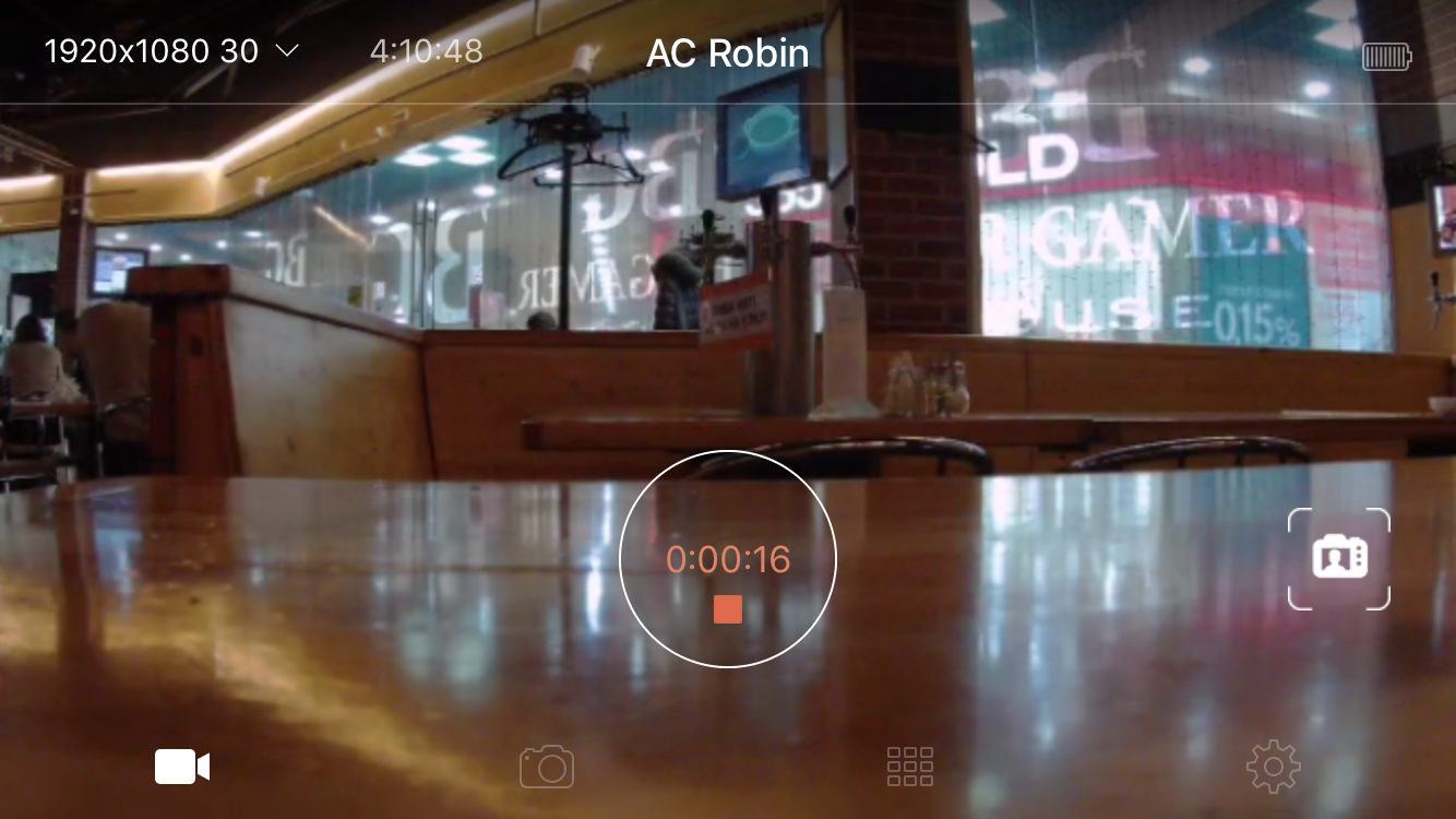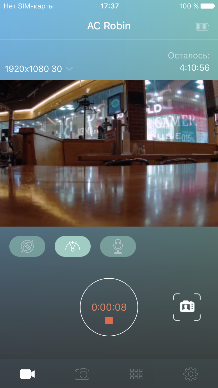 Как и подавляющее большинство современных фото- и видеокамер, наш аппарат умеет связываться с мобильными устройствами на расстоянии посредством Wi-Fi. Мобильное приложение, с помощью которого ведется управление камерой, называется так же, как и сама камера: AC Robin. Некоторые параметры, доступные в камере, все еще не включены в это приложение. Например, выбор режимов записи пока не предполагает съемку в максимальном режиме 2160p.