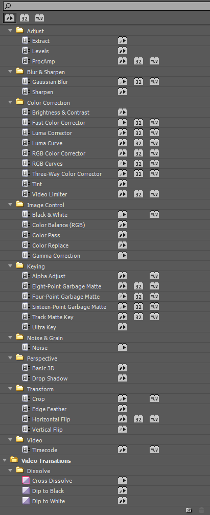Гадать не было никакого смысла. Конечно же, GeForce GTX 285 оказалась слабее — при включении уже пятого слоя электронные игровые мозги сдались победителю-профессионалу Quadro FX 4800. И пусть количество фильтров в Adobe Premiere Pro CS5, поддерживаемых аппаратно, одинаково для профессиональных карт и игровой GTX285 (см. рис. справа). Как видите, на этом количестве всё и заканчивается. Близок локоть, да не укусишь: если более четырёх слоёв видео снабдить определёнными фильтрами, то GeForce GTX 285 перестаёт обрабатывать таймлинию аппаратно, в то время как старшие, профессиональные модели, продолжат аппаратный рендеринг.