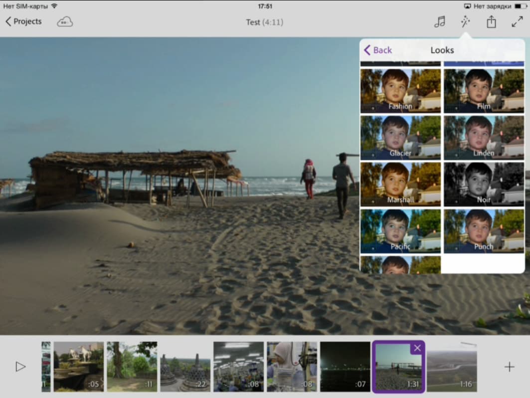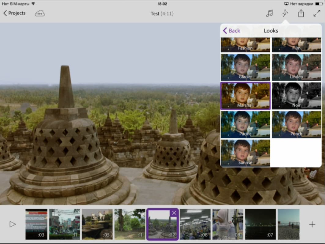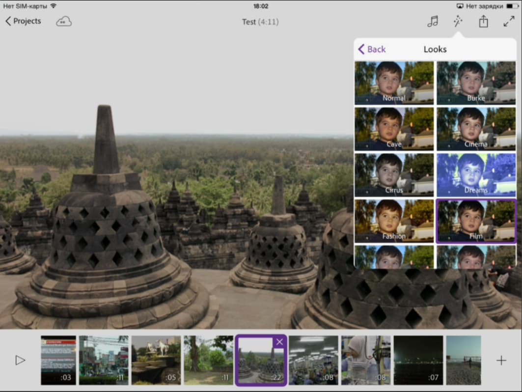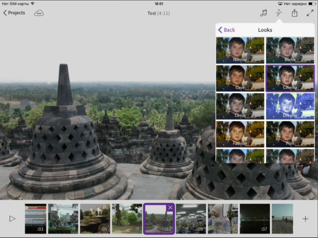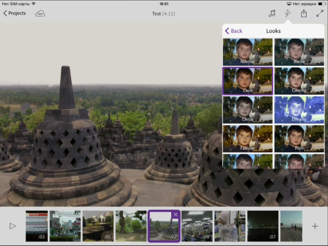 А теперь — сюрприз. Те, кто уже работал в десктопном программном обеспечении Adobe, наверняка знает о существовании инструмента, предназначенного для детальной цветокоррекции видео. Да, тот самый Looks. Вот уж чего никак не ожидаешь увидеть в приложении для мобильного гаджета...