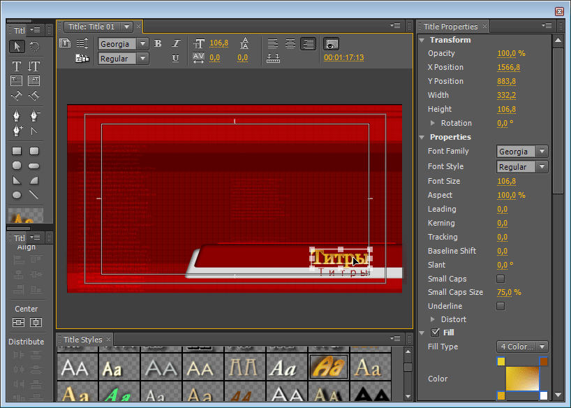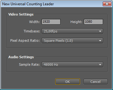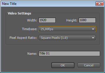 Таким же образом теперь необходимо вводить предварительные параметры при создании не только титров, но и любого другого материала (Bars And Tone и т.д.).