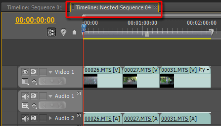 Данная команда позволяет быстро создать новую таймлинию — последовательность (sequence) клипов. Если в прежних версиях для создания такой вложенной последовательности приходилось выполнять множество различных команд, то теперь, как видим, для этого достаточно лишь кликнуть мышкой. Получившаяся в результате такого клика последовательность автоматически получает имя в виде "Nested Sequence #" и подменяет собой исходные клипы, из которых она была создана.